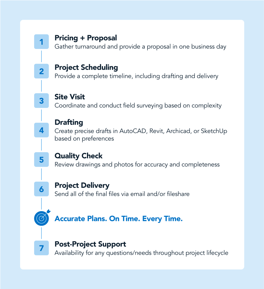 Even after your As-Built drawings are delivered, you may need help with updates, clarifications, or additional formats. Providers without post-project support leave you to navigate these needs alone.